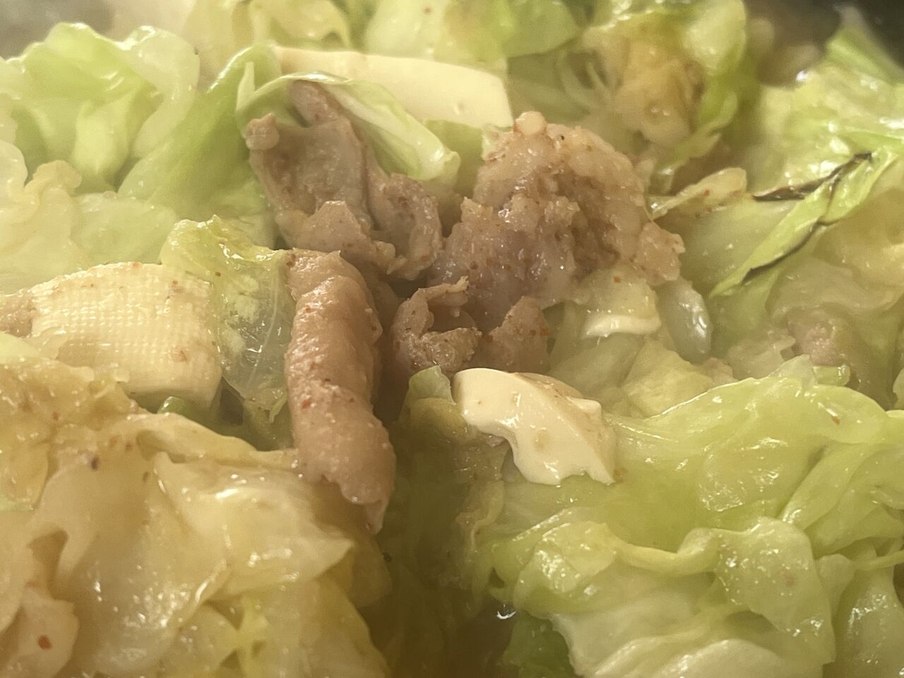 山盛りの、このキャベツが煮立った後には、ちっちゃくなっています。
